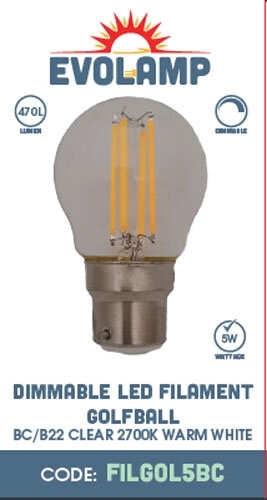 EVOLAMP 5W FILAMENT GOLF DIMMABLE, BC/B22,2700K